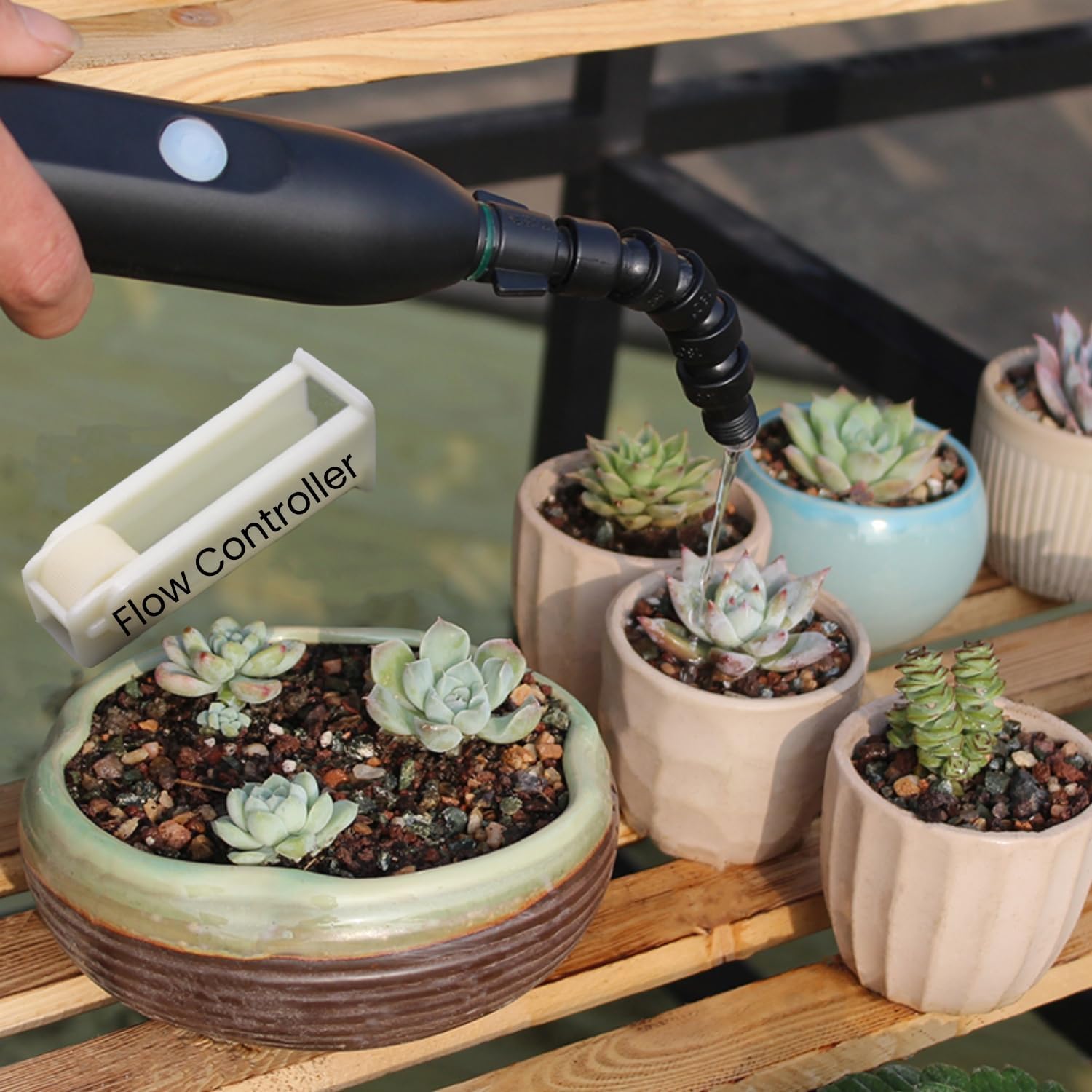 - Convenient Design: batteryed and portable, you can control the flow for succulent plants. Slow water for seeds or other small plants. No leak and mess.